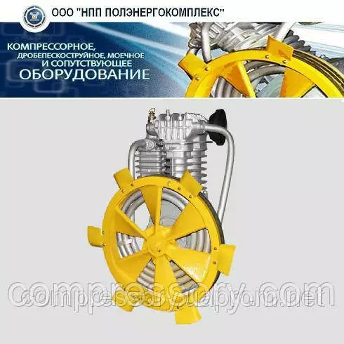 Компанія ТОВ “НВП Поленергокомплекс” надає повністю готові до роботи, заправлені олією компресорні головки в комплекті з деякими елементами системи охолодження: маховиком та лопатями. Використовувати цю компресорну головку рекомендують з електричними двигунами на 5,5 кВт або з аналогічними двигунами внутрішнього згоряння. Робота з двигуном внутрішнього згоряння можлива за умови використання автономного компресора.